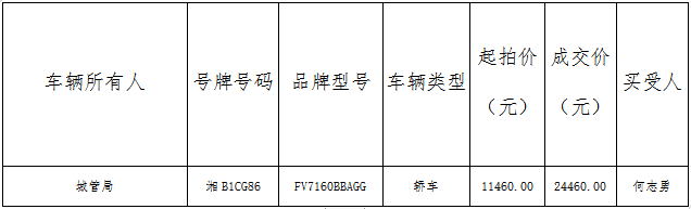 2023年8月28日上午9:30,我单位委托株洲拍卖有限公司在株洲市公共资深交易中心公开拍卖公务用车 1 台,成交信息如下: